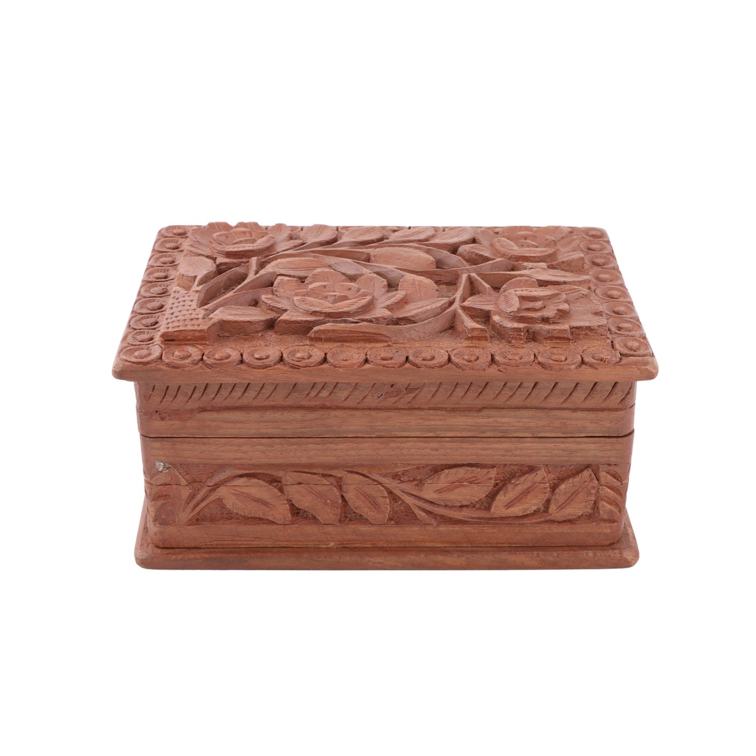 Handcrafted Walnut Wood Carved Storage Box (6 x 4.2 x 3 Inches)